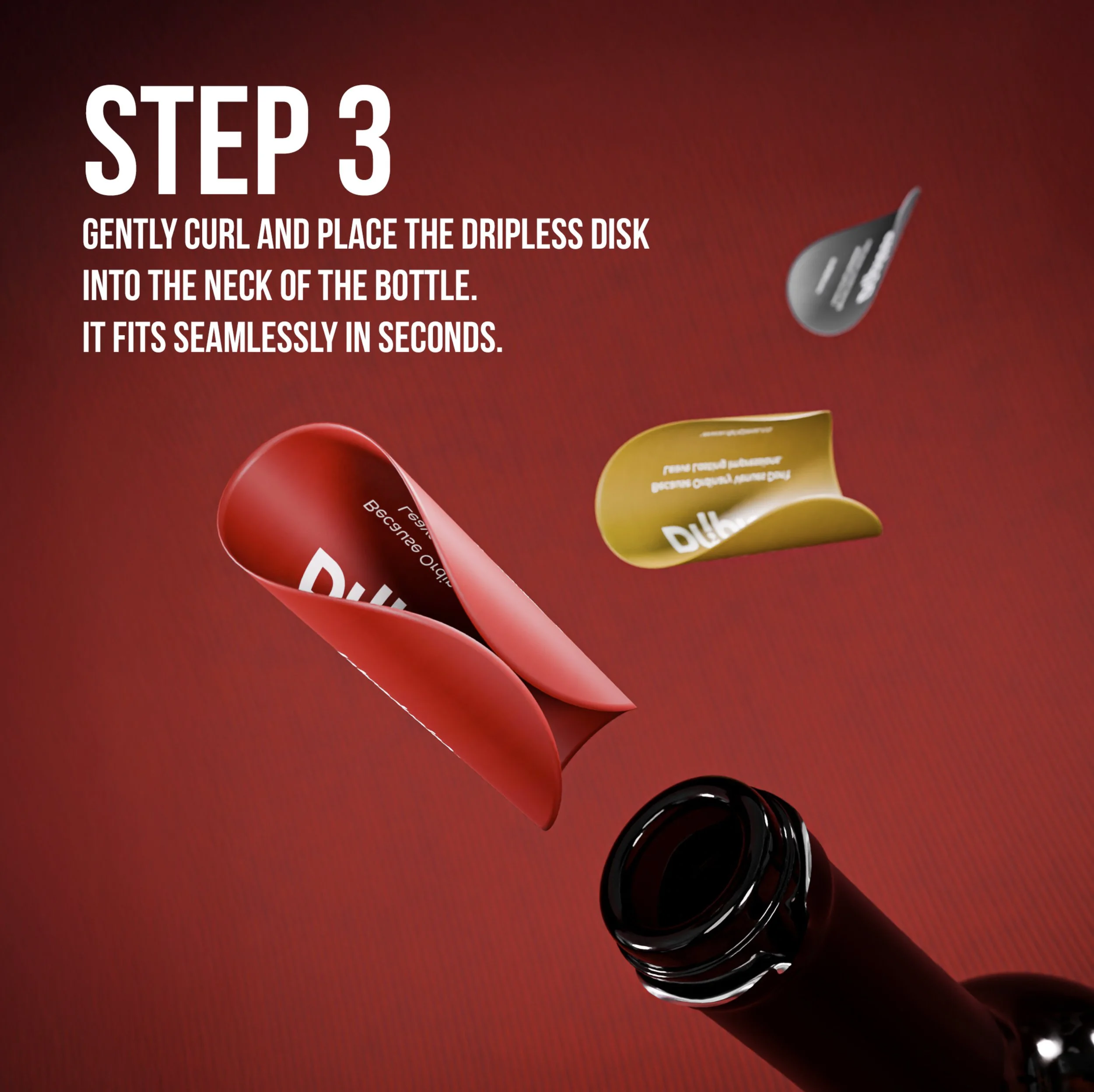 Curl these re-usable discs into the bottle neck and effortlessly pour while showcasing your brand.